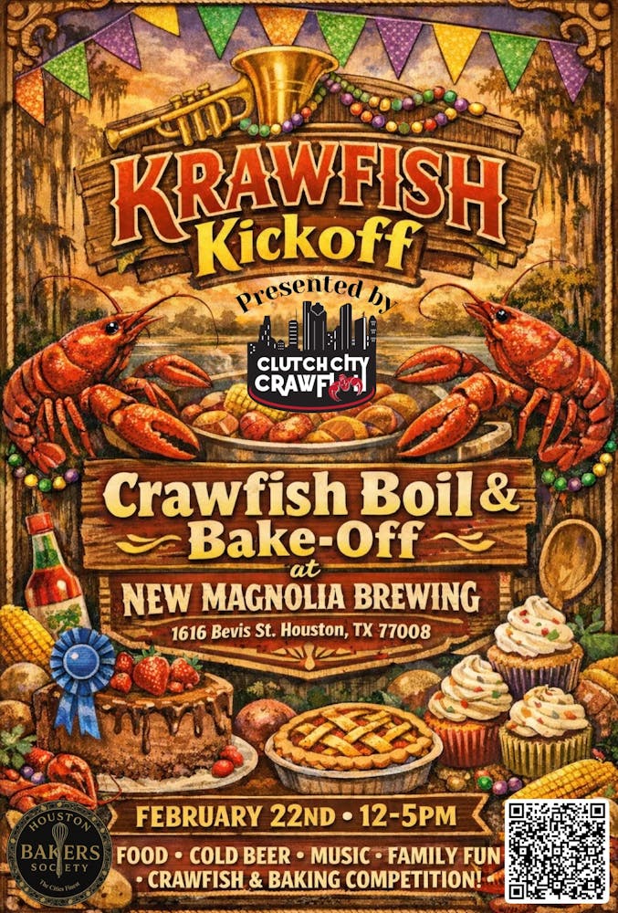 To start the 2026 Crawfish Season, Clutch City Crawfish, in partnership with New Magnolia Brewing is kicking it off with a bang! Join us for an All-You-Can-Eat crawfish boil. In addition, we will be inviting the Houston Bakers Society out to compete in a crawfish themed bake off. So bring the crew and get your fill of crawfish!